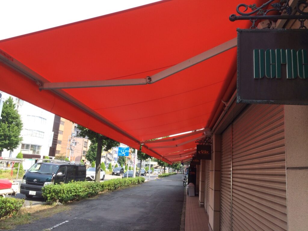 弊社では10 年近くオーニングテントの設置工事を行っております。